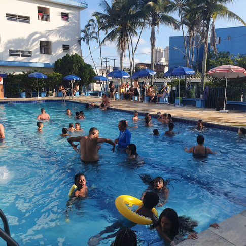 Colônia de Férias de Praia Grande 65 apartamentos, piscina e quadra de jogos.